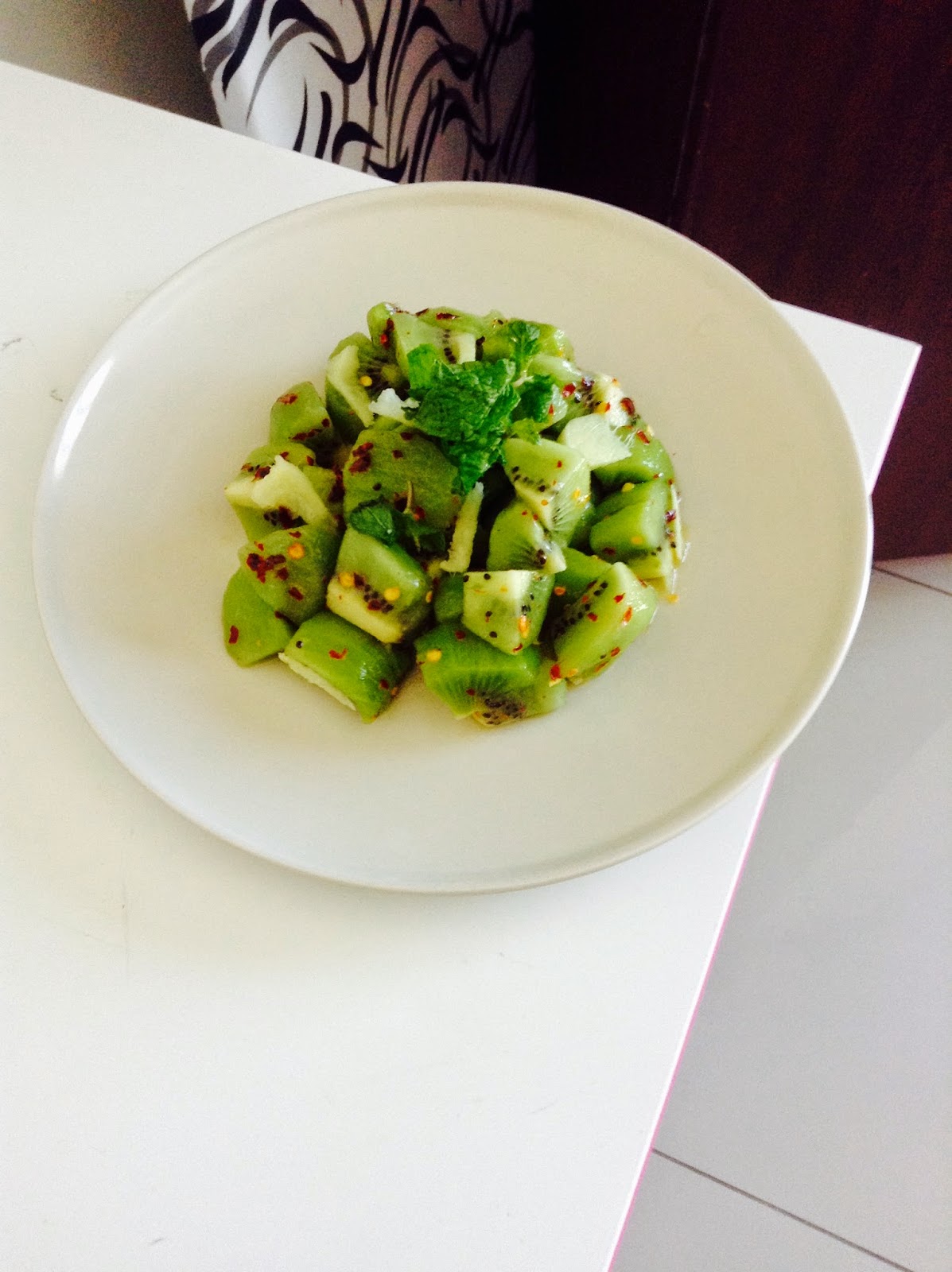 Kiwi, red chili flakes and olive oil salad