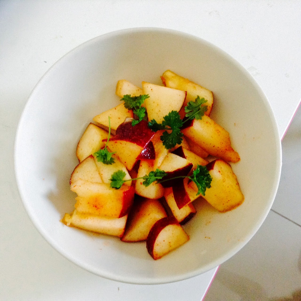 Just slice apples, add salt, chili powder, lemon juice, and parsley.