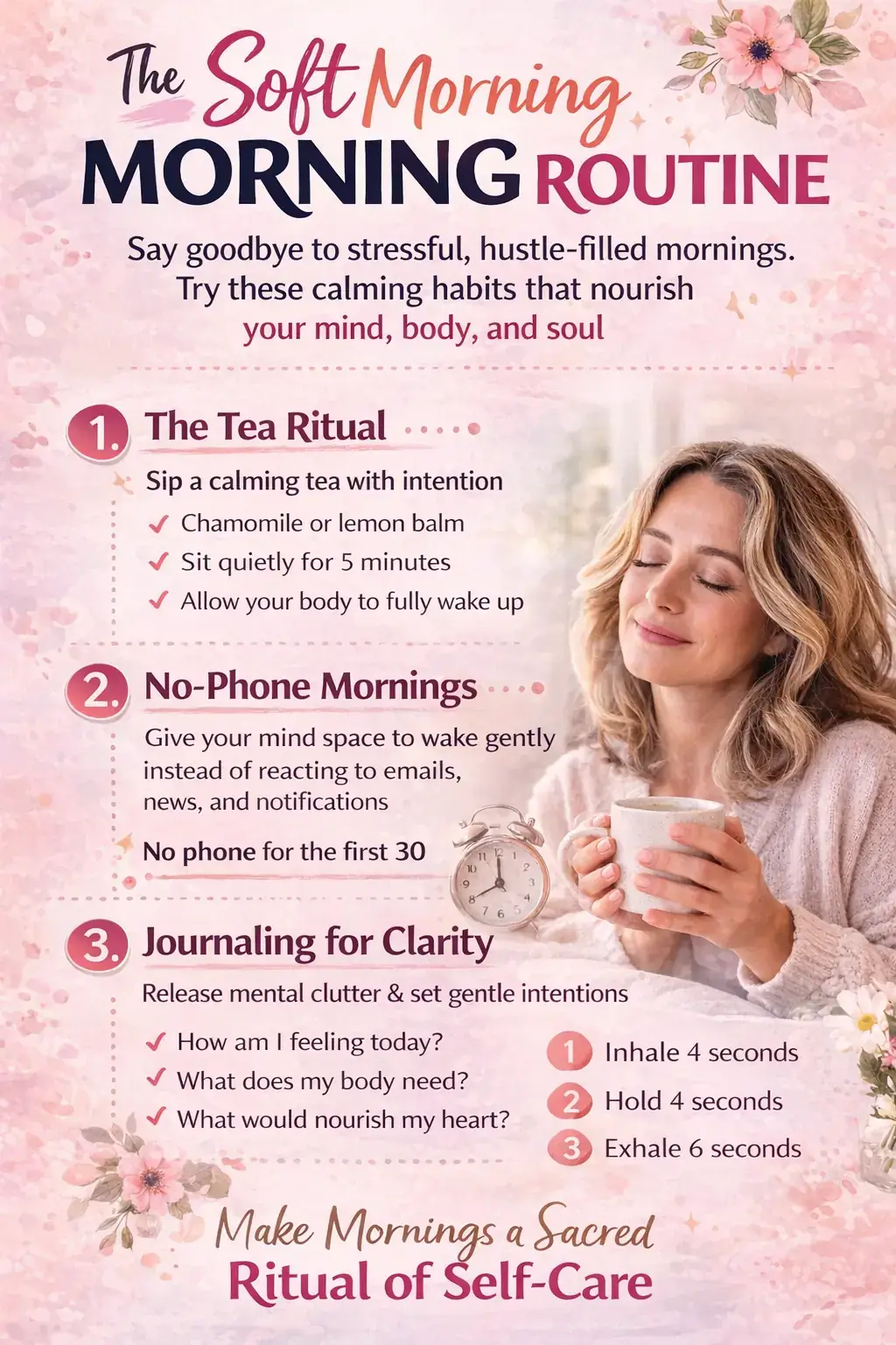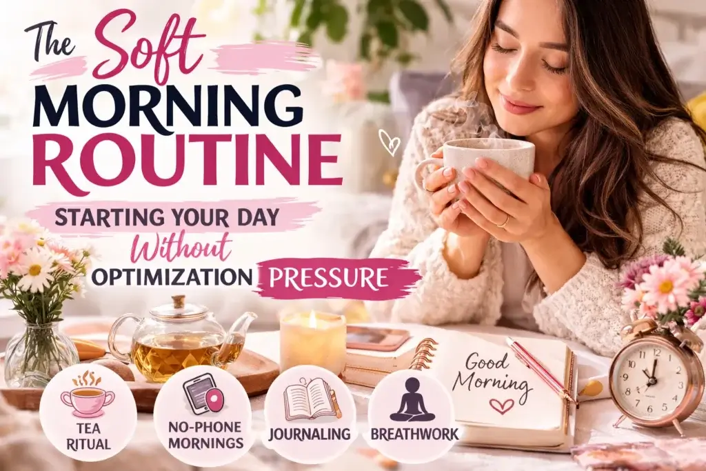 A soft morning routine gently protects your mental space by introducing a no-phone window.