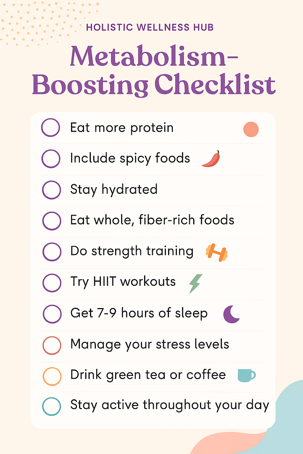 1. Get Enough Sleep. Poor sleep disrupts hormones like cortisol and insulin, which can slow metabolism. Aim for 7–9 hours.