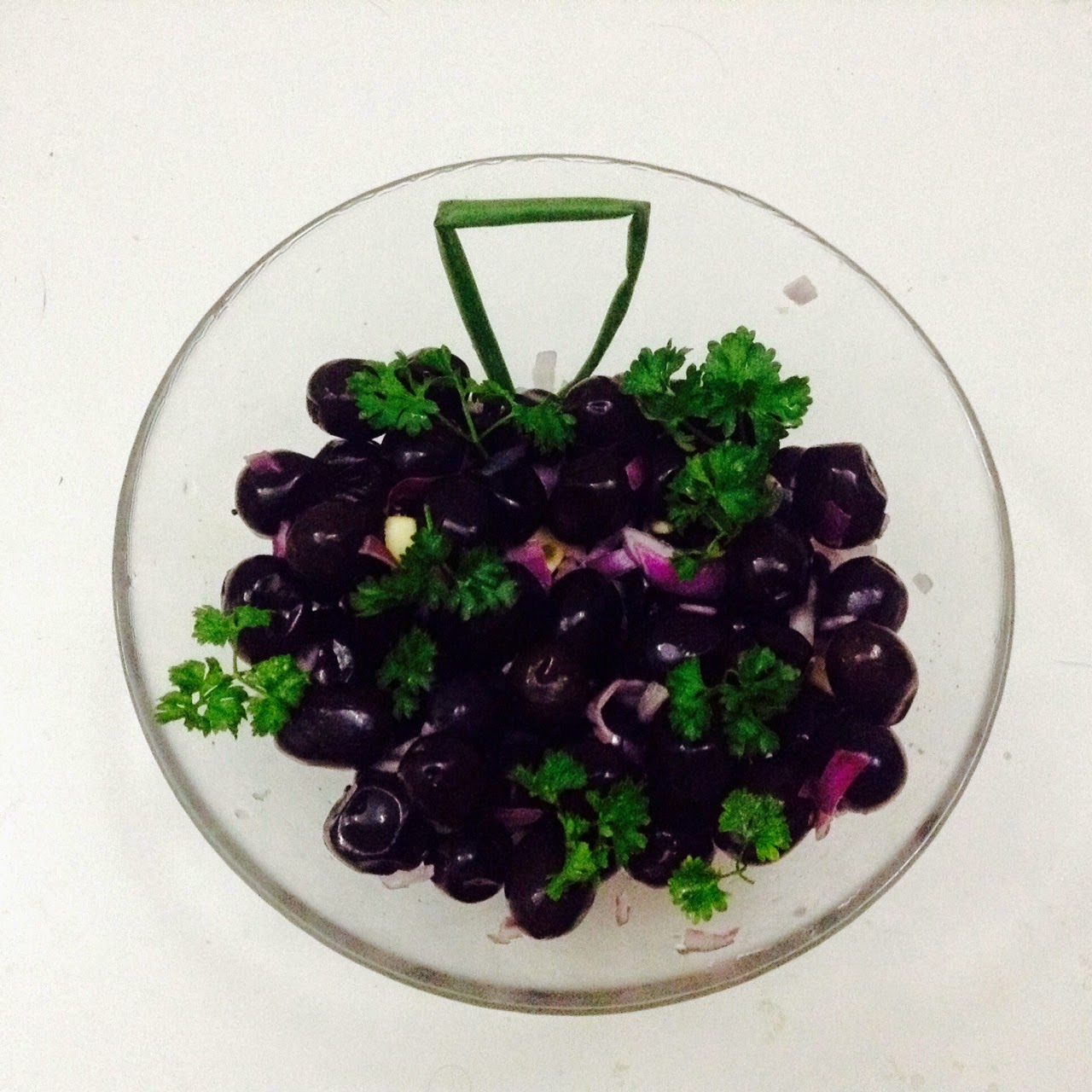 Olive is a rich source of vitamin E. So I tried my hand in preparing a nutritious olive salad. Just add olives, salt, lemon juice, crushed garlic, thinly sliced onion, and parsley. Drizzle a teaspoon of olive oil over it. It tastes divine! Okay! Somewhat in-between.